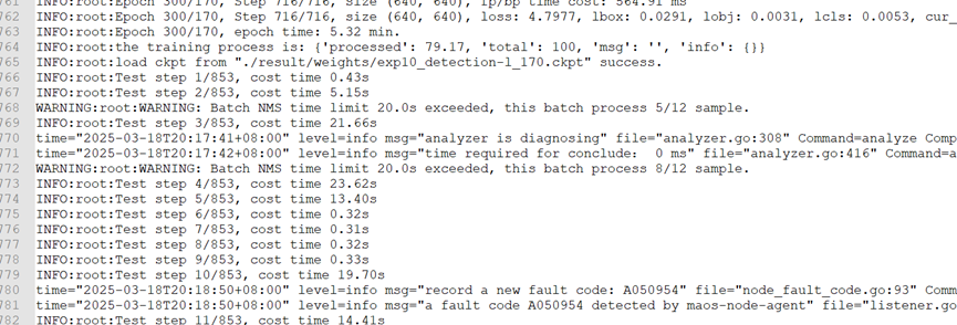 从训练日志中可以看到在第170个epoch结束后,开始进行评测任务(客户自己定制的特性)