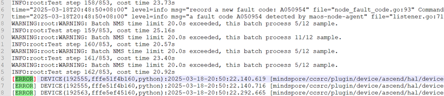 [ERROR] DEVICE(192563,ffff90722010,python):2025-03-18-20:50:24.716.326 [mindspore/ccsrc/plugin/device/ascend/hal/device/ascend_stream_manager.cc:241] SyncStream] Call runtime aclrtSynchronizeStreamWithTimeout error.