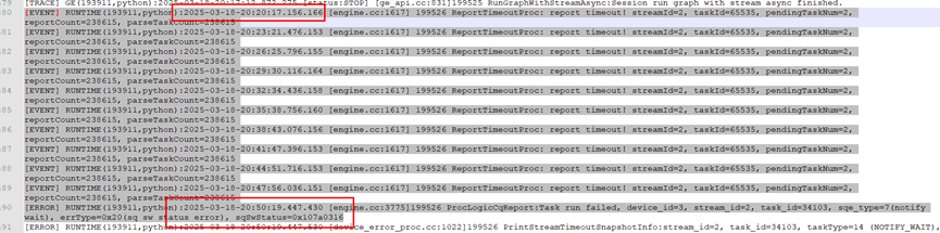 Notify wait的错误是因为HCCL超时,超时时间是通过HCCL_CONNECT_TIMEOUT和HCCL_EXEC_TIMEOUT来控制的。检查运行环境的HCCL_CONNECT_TIMEOUT和HCCL_EXEC_TIMEOUT配置,运行环境变量中并没有HCCL_CONNECT_TIMEOUT(默认时间60)和HCCL_EXEC_TIMEOUT(默认时间1800(秒))。