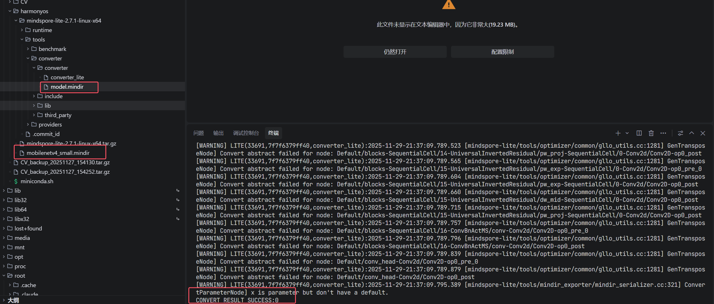 为什么我使用MindSpore Lite将mindir模型转换成ms模型的过程中,执行./converter_lite --fmk=MINDIR --modelFile=model.mindir --outputFile=model命令最后生成的还是mindir模型。