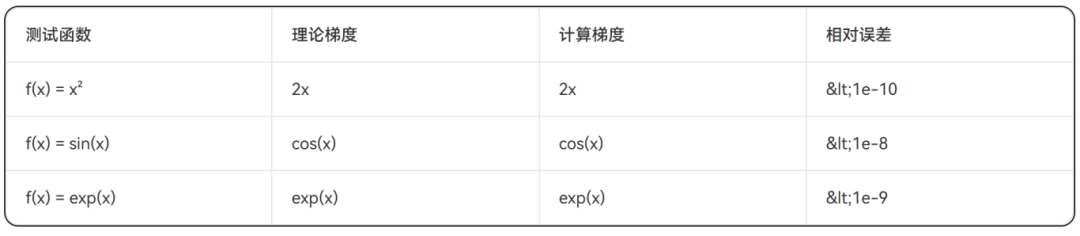 表3:自动微分数值精度验证