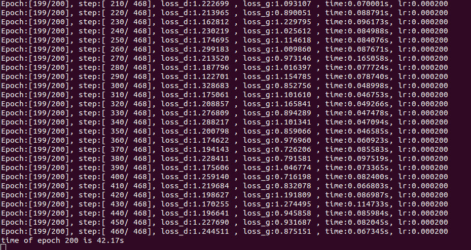 print("time of epoch {} is {:.2f}s".format(epoch + 1, end - start))