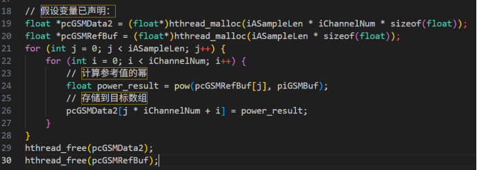 在内存管理上,python能自动内存管理(Tensor),无需显式分配/释放内存,使用预分配的张量操作,避免重复的内存分配和复制;Hthread-C语言版本,需要手动内存分配(Hthread_malloc/Hthread_free),需要管理数据对齐,显式的指针操作,具体差异如图1.2和1.3