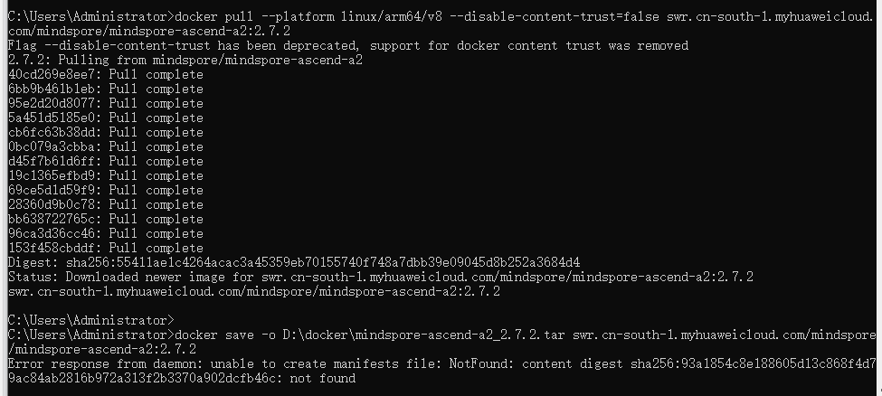 docker save -o D:\docker\mindspore-ascend-a2_2.7.2.tar swr.cn-south-1.myhuaweicloud.com/mindspore/mindspore-ascend-a2:2.7.2-arm64