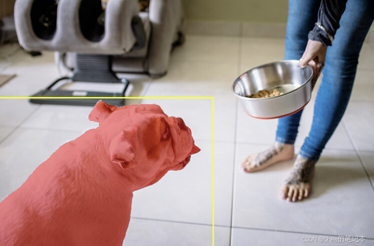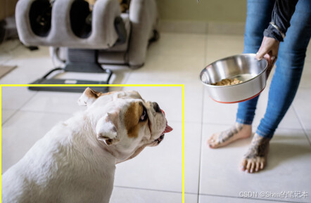 画出来的图是这样的(黄色框确实框住了狗头和身体):