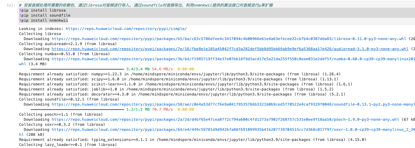 2)安装音频相关依赖(用于读写 wav、μ-law 量化)