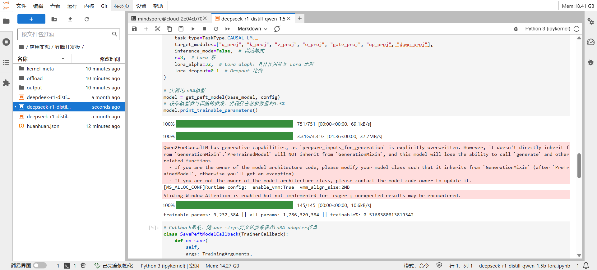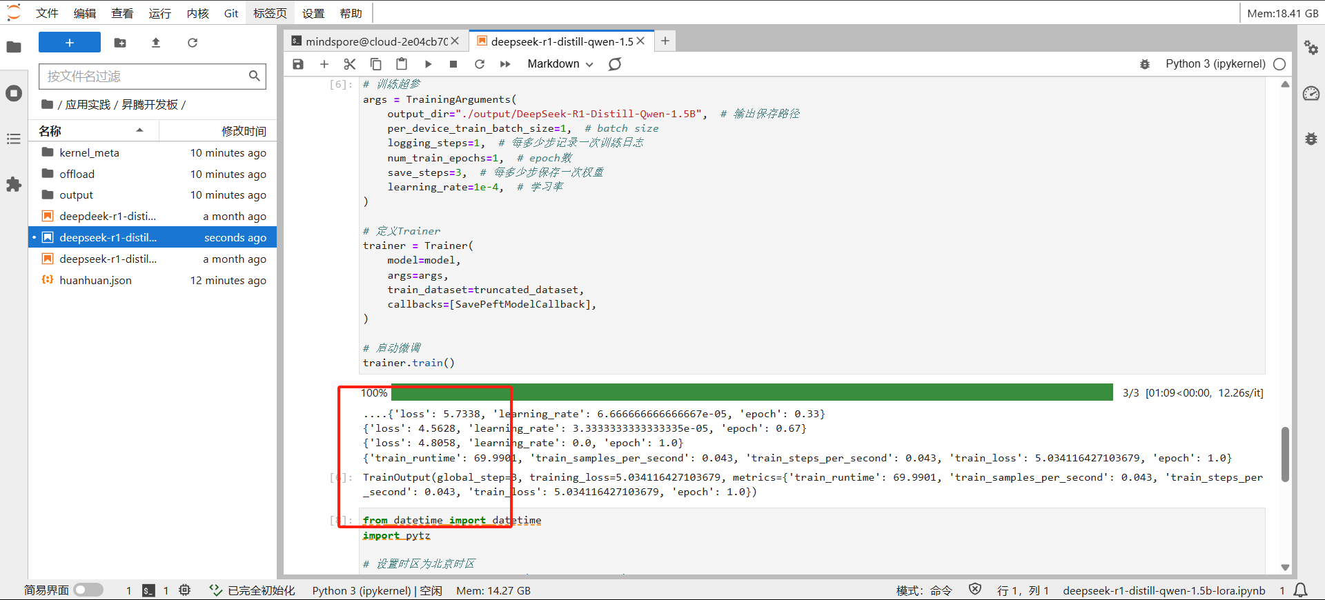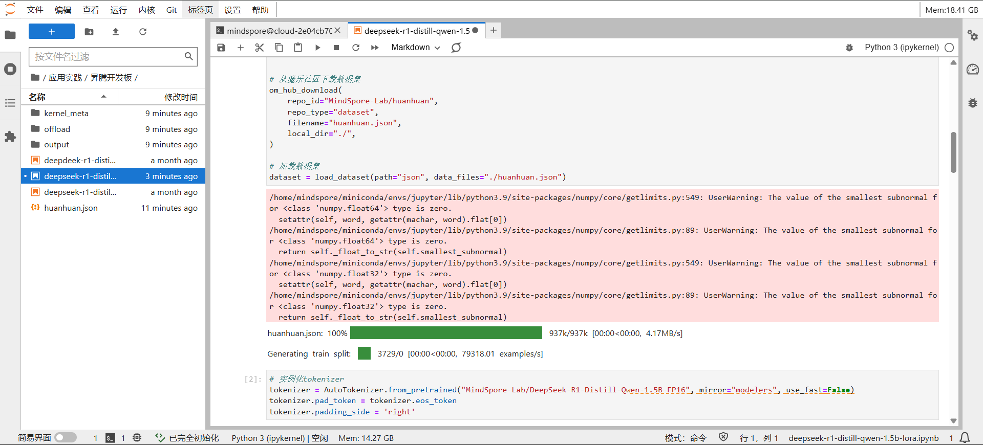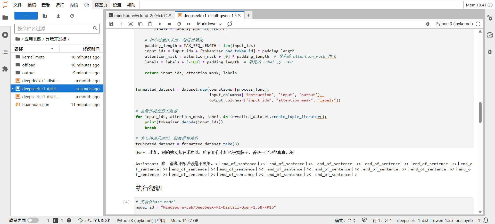 由于环境已经配置好了,下面我们直接开始进行lora的微调实操