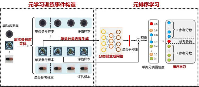针对工业AI质检场景中异常样本难以收集、单类样本建模准确性不足等核心难题,本项目以智能感知技术为基础,创新性地将元学习与单类分类相结合,提出并实现了基于正样本的类别边界生成、元排序学习等核心算法,在无或极少量异常样本条件下,精准捕捉产品的异常特征,显著提升检测性能。同时,相关技术在细粒度异常检测、罕见类别识别等任务上展现出优越的适应性和泛化能力。